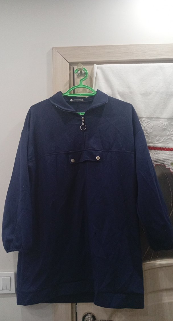 kadın için lacivert midi boy rüzgarlık, yüksek yakalı, uzun kollu ve bol kesimdir. Düğme detaylı, fermuarlı ve yumuşak sıcak kumaştan üretilmiştir. ️