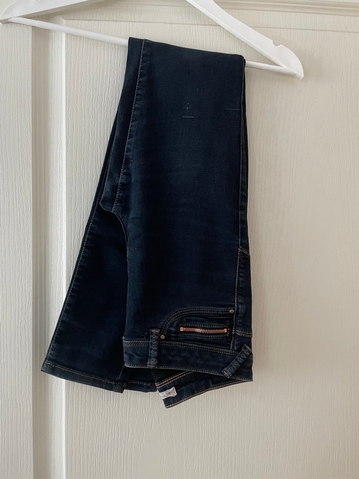 Lacivert, fermuarlı detaylı, midi boy, sade tasarımlı, kadınlara özel dar kesim pantolon
