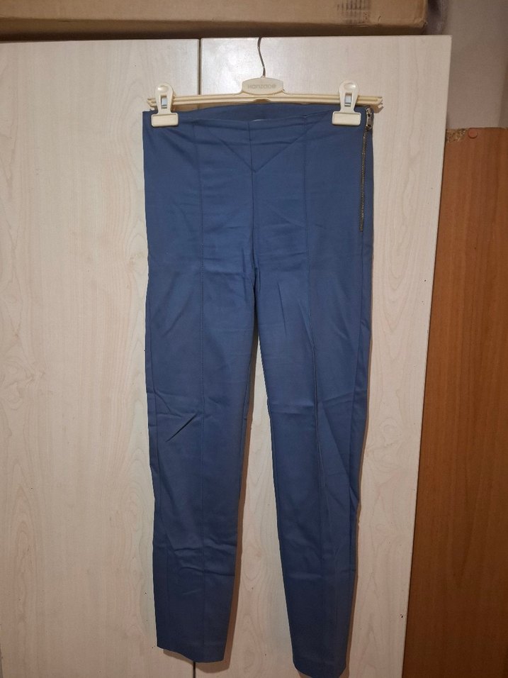 Kadınlar için regular fit, midi boy, fermuarlı detaylı lacivert denim pantolon. Ofis ve minimalist tarz için uygundur.