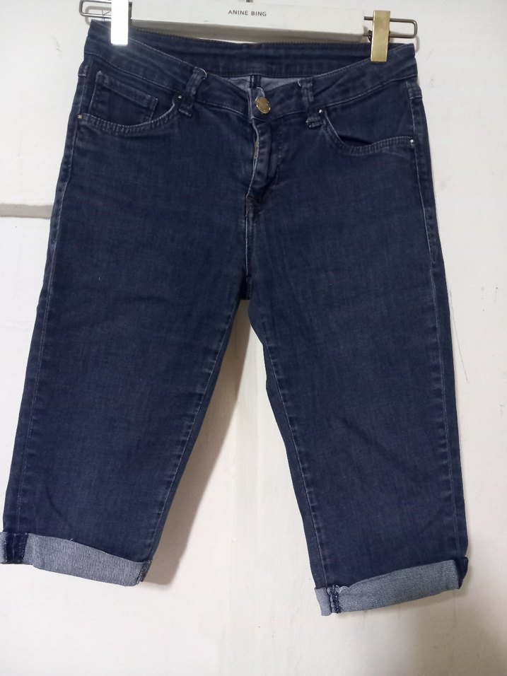 Lacivert renkte, normal uzunlukta midi denim şort. Rahat kesimiyle günlük sokak stiline uygun, desen içermeyen şort, zahmetsiz şıklık sunar.