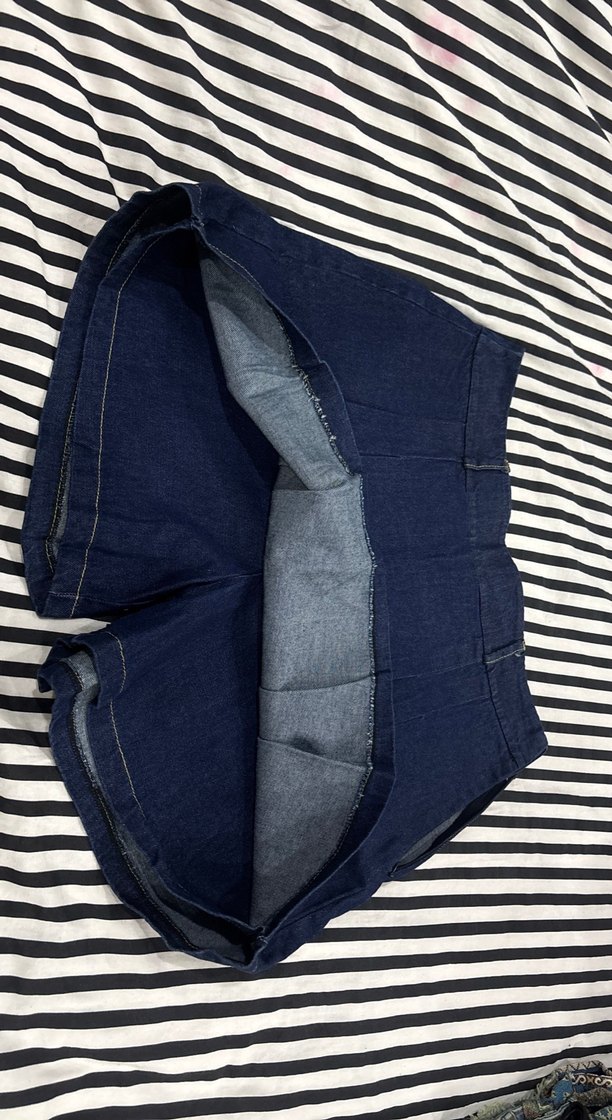 Kadınlar için lacivert denim şort, pileli tasarıma, bol kesime ve midi boy uzunluğa sahiptir. Günlük rahat sokak stili için uygundur.