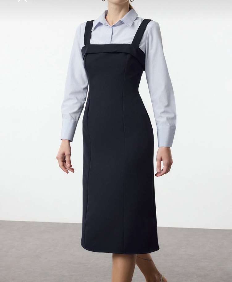 Trendyol milla Lacivert midi boy elbise 1 kez kullanıldı. Ben arkadaki yırtmacını yarıya kadar kapattırdım.