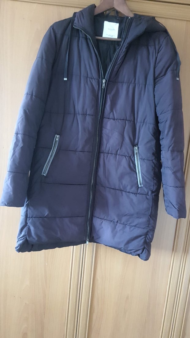 Lacivert, fermuarlı, normal uzunlukta midi kışlık mont. Notch yaka ve fleece kumaş ile rahat, genç stil için uygun. ❄️