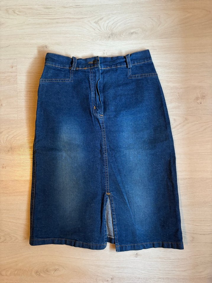 Lacivert kot kumaştan yapılmış, önden yırtmaçlı, midi etek. Günlük kullanım için uygundur.