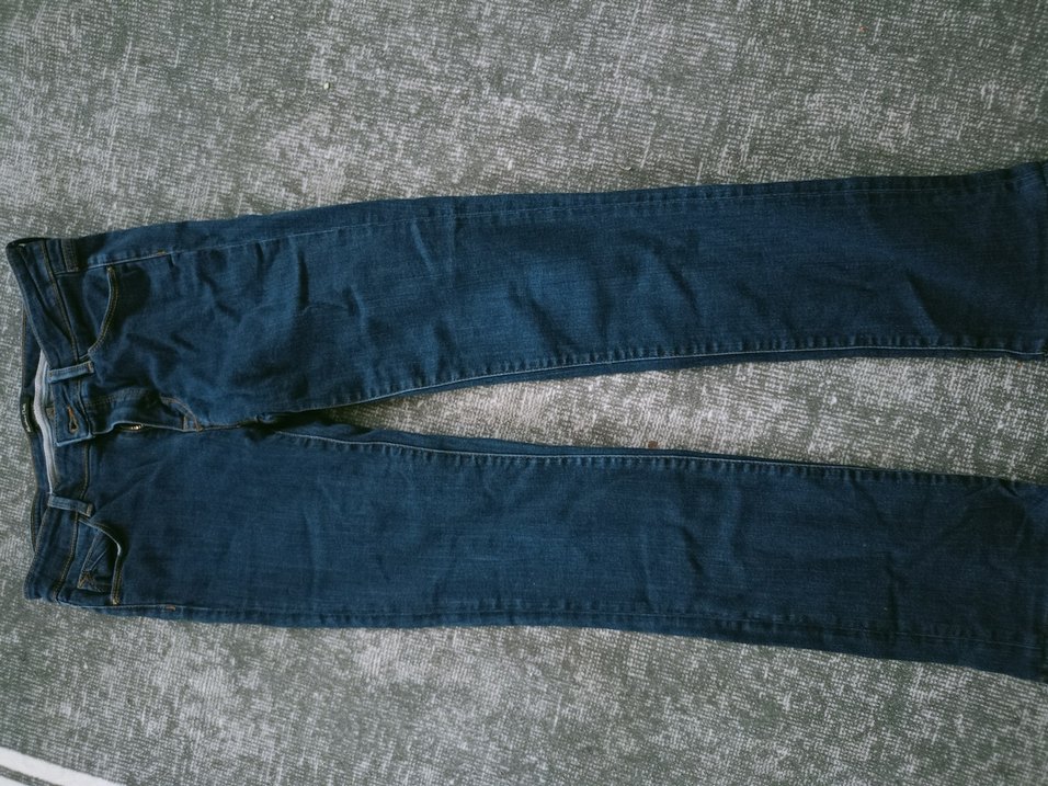 Lacivert midi uzunlukta, kemerli, regular fit denim kot pantolon, gündelik kullanıma uygun.