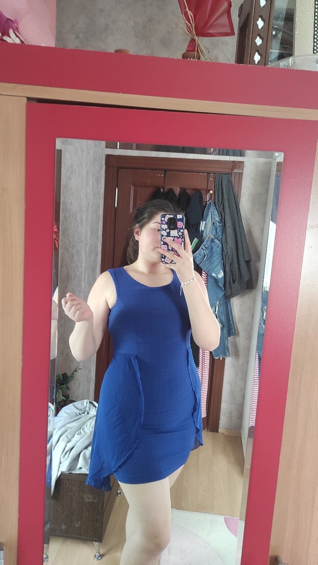 Lacivert renkli, straplez yaka ve kolsuz tasarıma sahip, transparan detaylı, günlük kullanıma uygun fitted denim elbise. Marka temsilidir