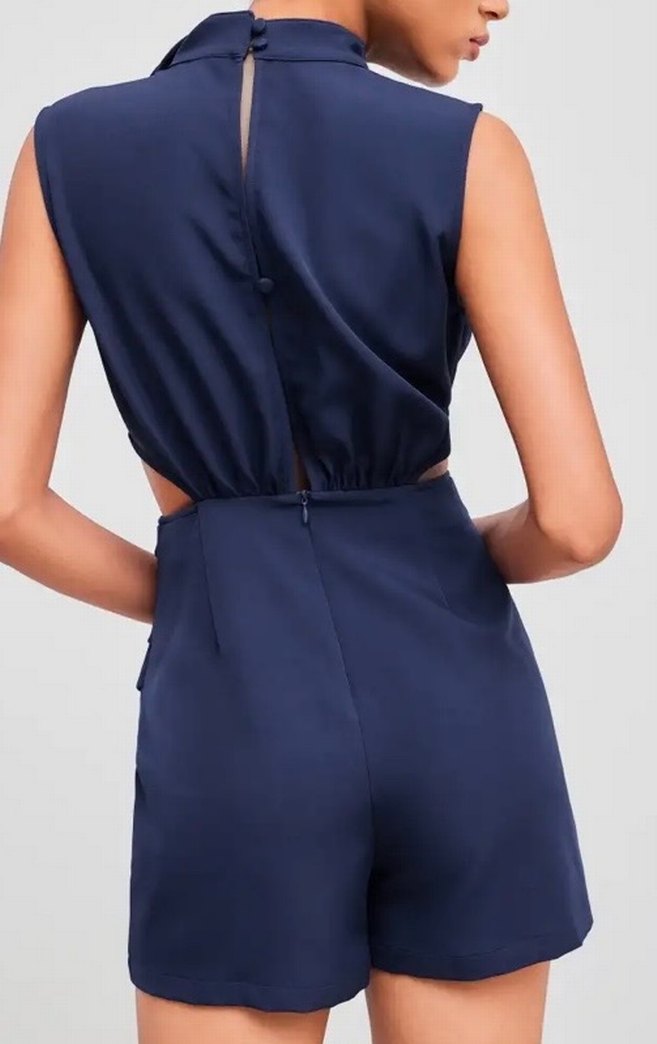 Lacivert,kolsuz kısa tulum, modern ve ofis ve düğün için uygun tarzda. 2 kere giyildi defosuz