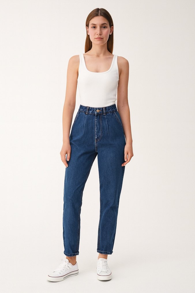 Lacivert denimden üretilen bu pantolon. Desensiz tasarımıyla günlük kullanıma uygun, zahmetsiz şıklık sunar. #denim #momjean #mom #jean #kadın #giyim