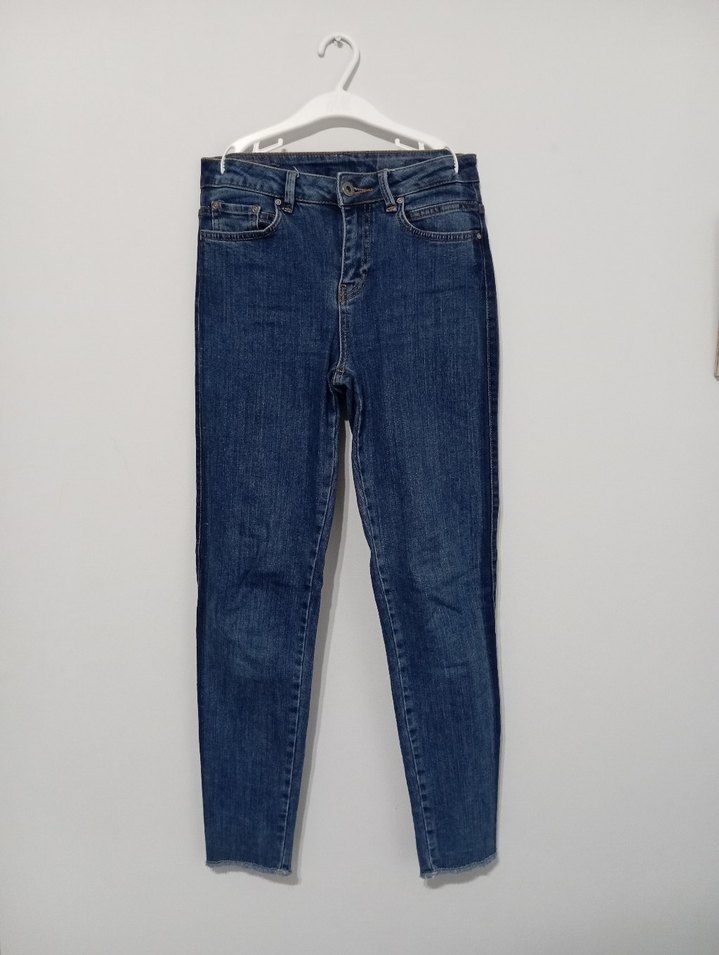 Lacivert renkli, normal boy ve regular fit kesime sahip, desensiz günlük kullanıma uygun denim jean.