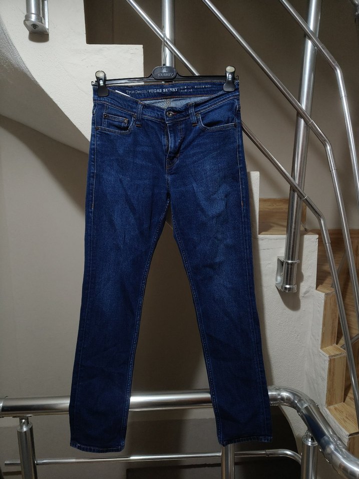 Lacivert renk, normal boy ve regular fit jean. Tokalı detaylı, günlük rahat sokak stili için uygun.