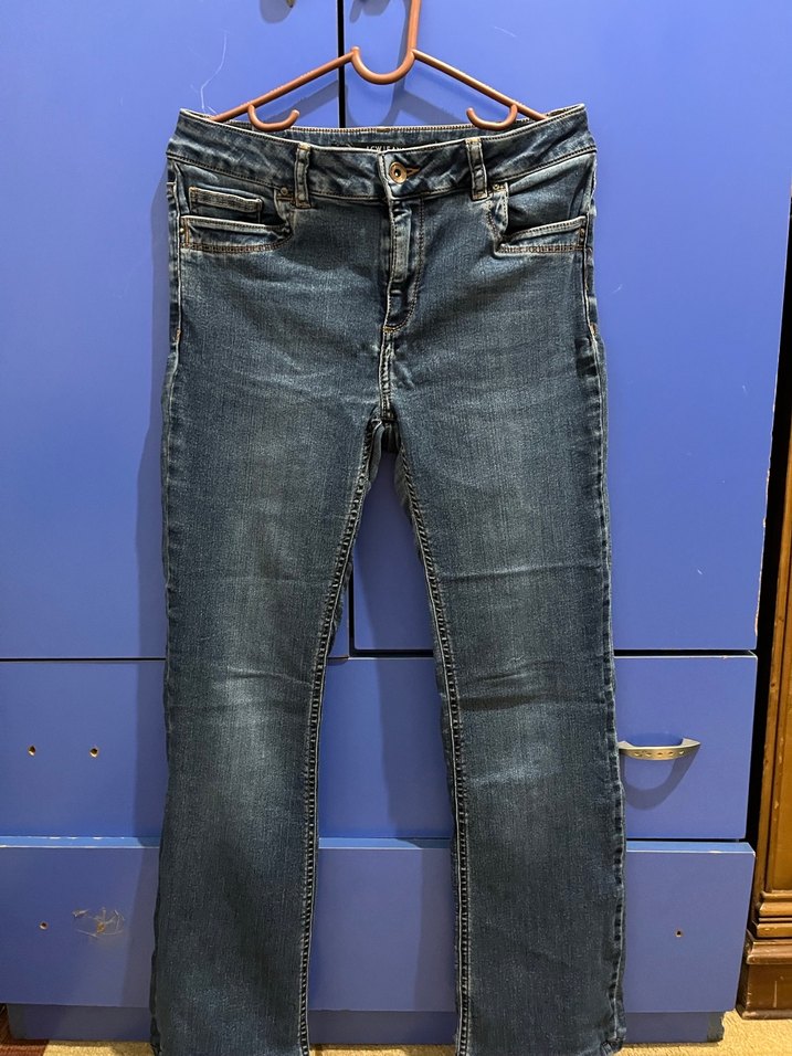 Kadınlar için lacivert renkte, normal boy ve regular fit kesimde kot pantolon. Tokalı detaylı, desen içermeyen günlük kullanıma uygun rahat model.