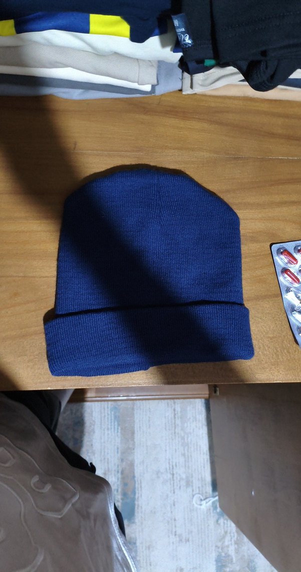 Kadınlar için koyu lacivert örgü bere, yumuşak ve sıcak kumaştan yapılmıştır, rahat bir sokak stili sunar.