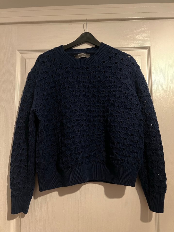 Lacivert örgü triko, yuvarlak yaka ve uzun kollu, bol kesim rahat ve günlük kullanım için uygundur. Primark yurtdısı markası.
