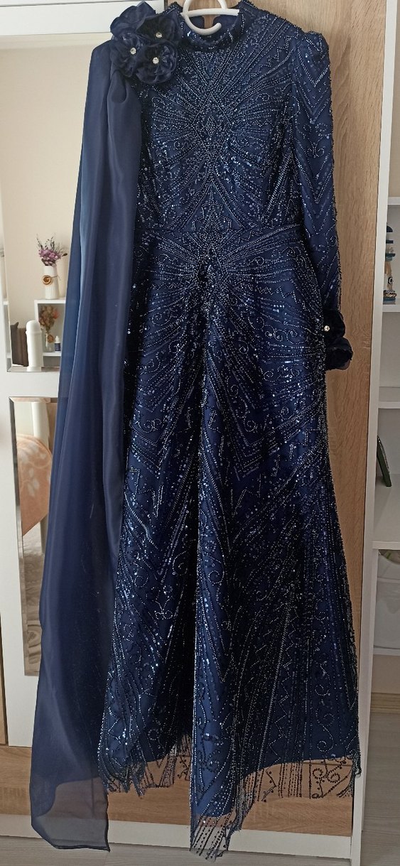 Sadece nişanımda 1 kere giydim hiçbir kusuru yok. Taşları yapıştırma değil işlemedir dökülme yapmaz. Sağ kolunda pelerin detayı vardır. Boyu omuzdan ölçüldüğünde 142cm. Fotoğraf da göründüğü şekilde bir adet hiç kullanılmamış janjan şalı ve baş aksesuarı ile birlikte verilecek.