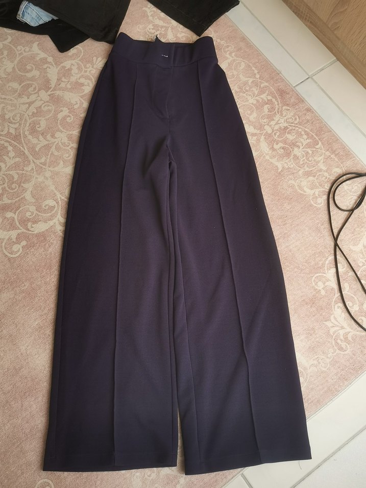 Lacivert renkte, pilili ve regular fit kesime sahip uzun kumaş pantolon. Sentetik kumaştan üretilmiş, iş ortamına uygun tarzda.