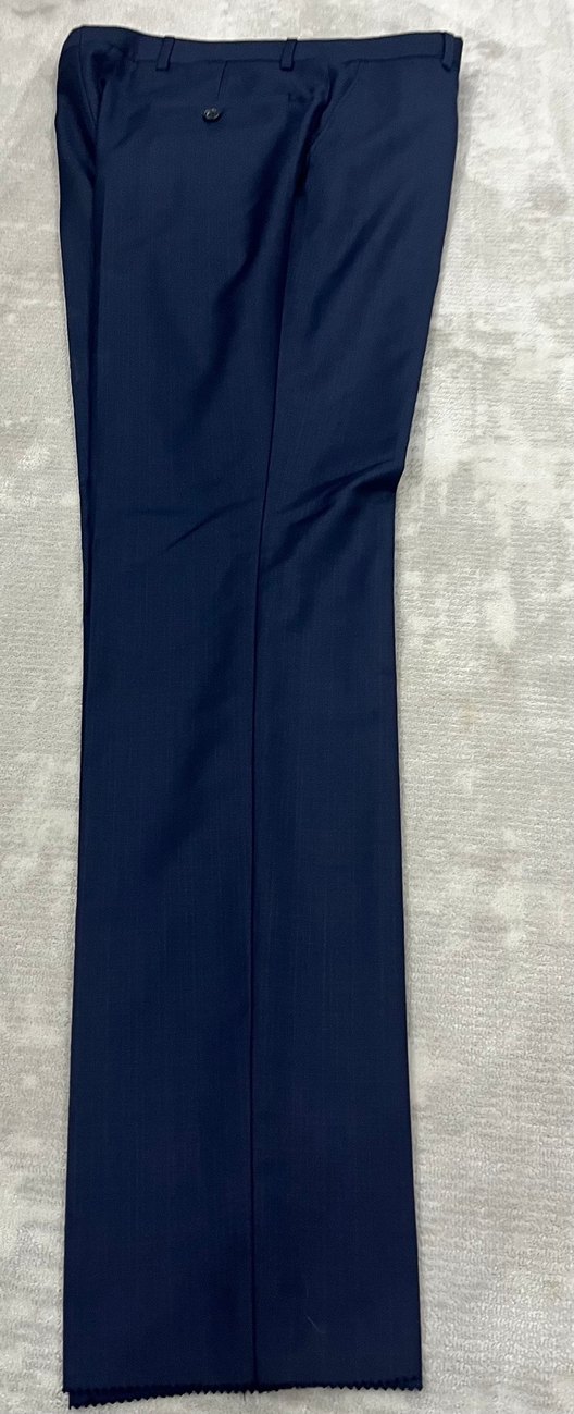 Kadınlar için tasarlanmış, pilili detaylara sahip ve uzun boylu kumaş pantolon. Yumuşak sentetik kumaştan üretilmiş, sade mavi renktedir ve ofis kullanımı için uygundur.