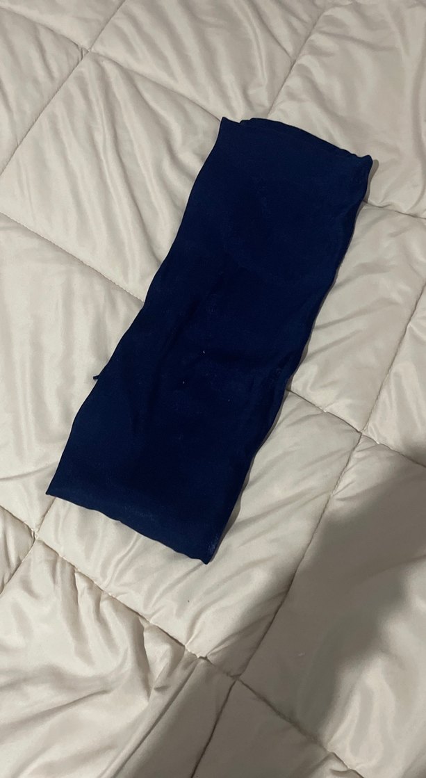 Kadınlar için koyu lacivert renkte, pilili detaylara sahip, yumuşak sentetik kumaştan yapılmış minimalist ve çağdaş tarzda şal.