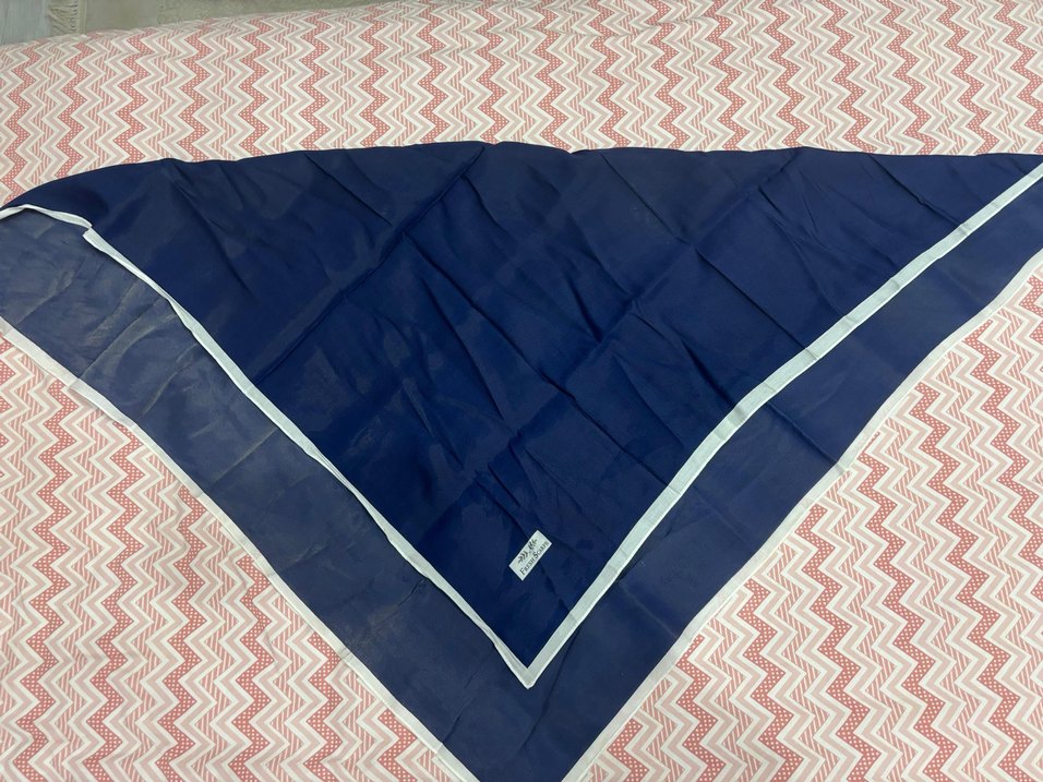 Kadınlar için koyu lacivert renginde, pilili detaylara sahip şal. Sentetik kumaştan üretilmiş, sade ve mütevazı tarz için uygun.