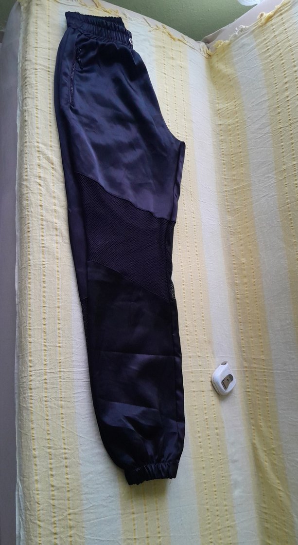 Lacivert tonlarında, piliseli detaylı, dokulu ve düz sentetik kumaş karışımlı, normal boy ve dar kesim kadın spor pantolonu.boy.98cm. ♀️