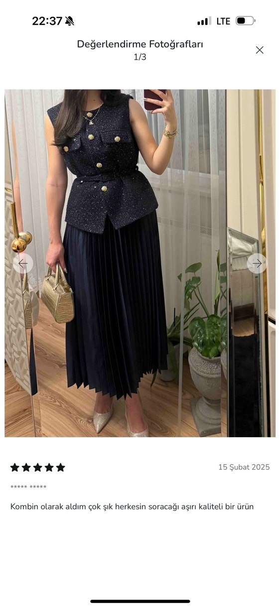 Kadınlar için lacivert, işlemeli detaylara ve altın düğmelere sahip kolsuz yelek ile uzun piliseli etekten oluşan takım. Notlu yakalı ve sentetik kumaştan, ofis için uygun. ✨ üst m beden alt Xs-s beden ikiside m bedene tekabül ediyor ölçü olarak
