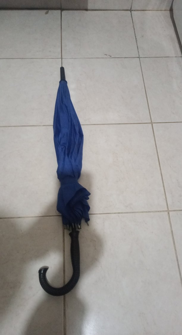 Koyu mavi, püskül detaylı ve kavisli saplı kadın şemsiyesi, minimalist ve gotik tarzda. ☂️