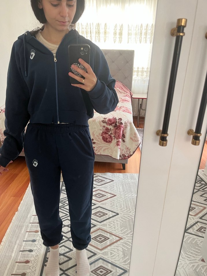 Kadınlar için tasarlanmış, rahat kesim ve midi boyda lacivert eşofman takımı. Yumuşak ve sıcak kumaştan, uzun kollu ve yakası notched lapel, günlük kullanıma uygun rahat şıklık sunar. Xs beden