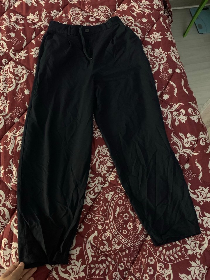 Kadınlar için lacivert , rahat kesim kumaş pantolon. Midi boyu ve minimalist tarzıyla günlük kullanıma uygun, sentetik kumaştan yapılmıştır. Ütüsüz olduğu için kusura bakmayın s beden fakat m bedenede olur ben m bedende kullandım
