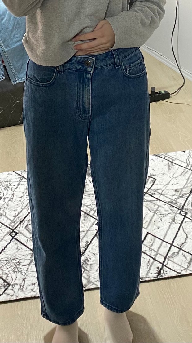 Kadınlar için rahat kesim ve normal boy midi jean Ufak bi renk açılımı görülüyor diz kısmında