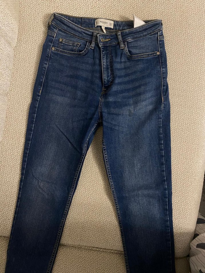 Kadınlar için normal boy, regular fit, tokalı detaylı lacivert denim pantolon. Günlük rahat kullanım için uygun, desensiz tasarıma sahiptir.