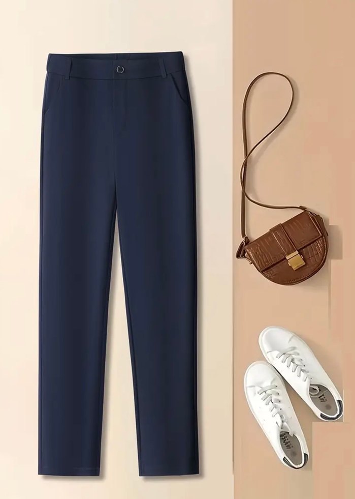 Kadınlar için lacivert kumaş pantolon, normal boy, regular fit kesim, desensiz ve şık sentetik kumaştan üretilmiştir. Hiç kullanılmamıştır. Beden olmadığı için satıştadır.
