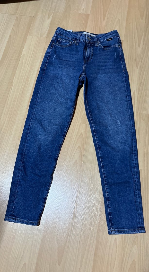 Kadınlar için regular fit ve midi boyda, koyu lacivert denimden yapılmış bir pantolon. Günlük kullanım için uygun, desen içermeyen ve rahat şıklık sunan bir model.