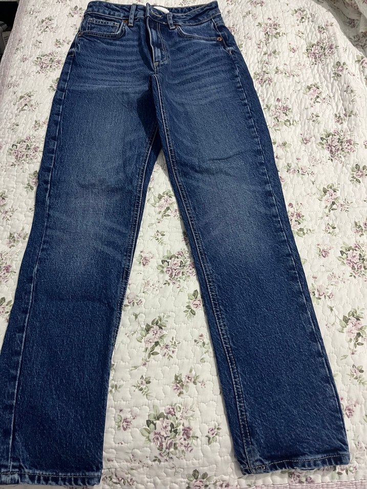 Kadınlar için lacivert kot pantolon, regular fit ve midi boy. Tokalı detayıyla günlük sokak stili için uygun.