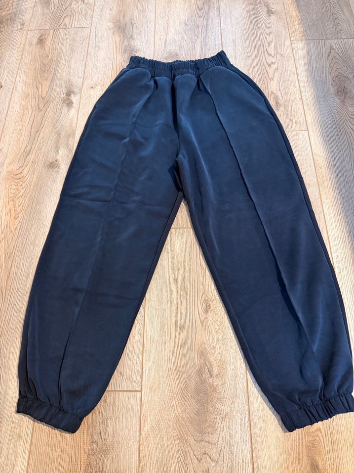 Kadınlar için lacivert, salaş kesim sweatpant. Yumuşak ve sıcak kumaş, lastikli bilek detaylarıyla rahat ve şık bir görünüm sunar.