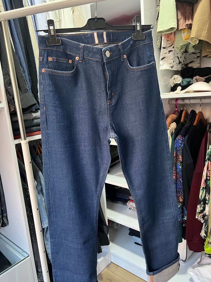 Kadınlar için lacivert kot pantolon, regular fit ve midi boy uzunluğunda. Tokalı detayı vardır ve günlük rahat kullanıma uygundur. Koyu renk, desensiz kumaş sokak stiline uygundur. Orjinal markadır