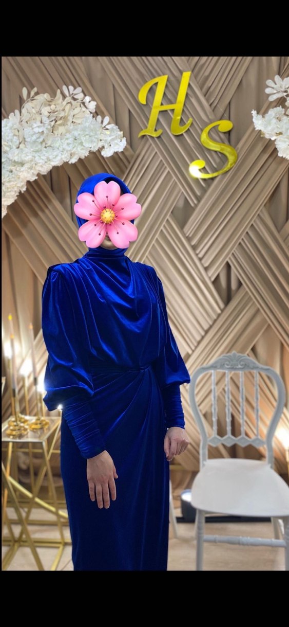 Kadın Lacivert Tesettür Uzun Abiye Elbise
