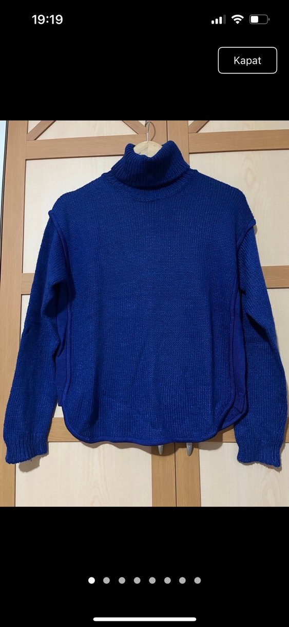 Kadınlar için koyu mavi renkte, boğazlı ve uzun kollu örme triko kazak. Rahat, normcore kesim ve günlük kullanıma uygun midi boyda, sade ve konforlu tasarım.