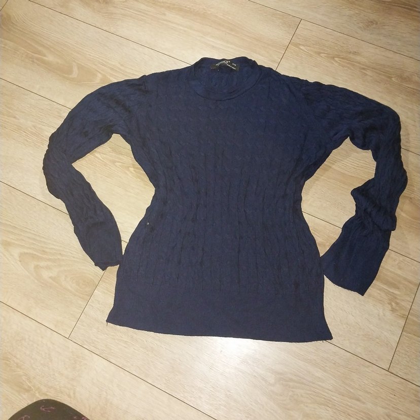 Fitted kesim, yuvarlak yaka ve uzun kollu kadın lacivert triko sweatshirt, yumuşak viskon kumaştan , günlük kullanım için uygundur. ince ve yumuşak. Hafta içi aynı gün kargoya verilir.