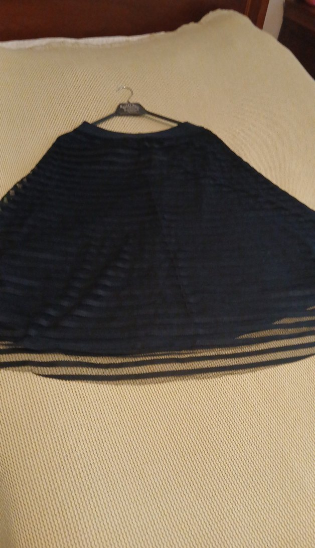 %100 polyester kumaştan, fırfırlı tüllü tasarıma sahip, lacivert bol kesim kadın eteği. Goth tarzı parti kombinleri için uygundur.