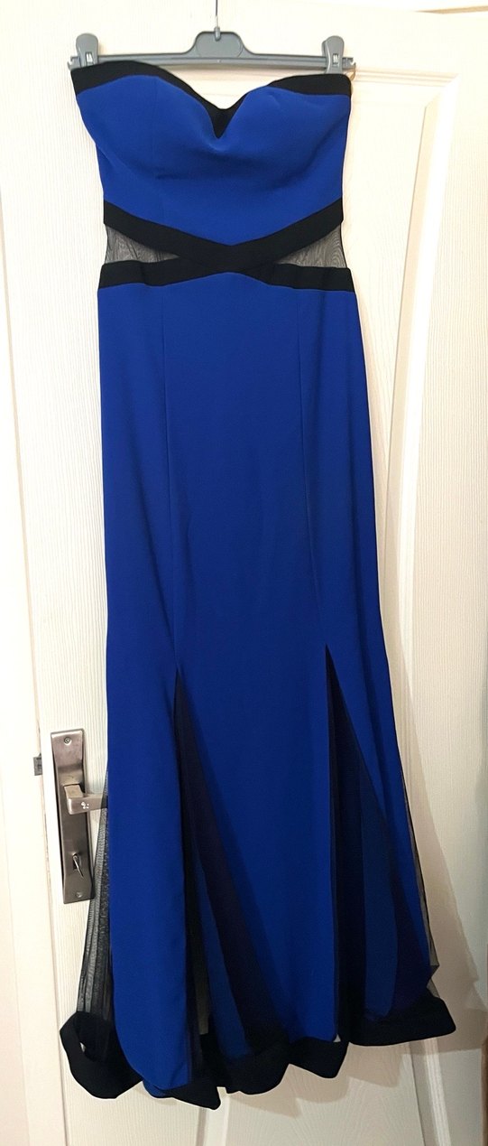 Lacivert, drapeli ve straplez, uzun abiye elbise vücuda oturan kesimle düğünler için uygun. Bir kez giyildi, mezuniyet ve düğün için uygun 36 beden
