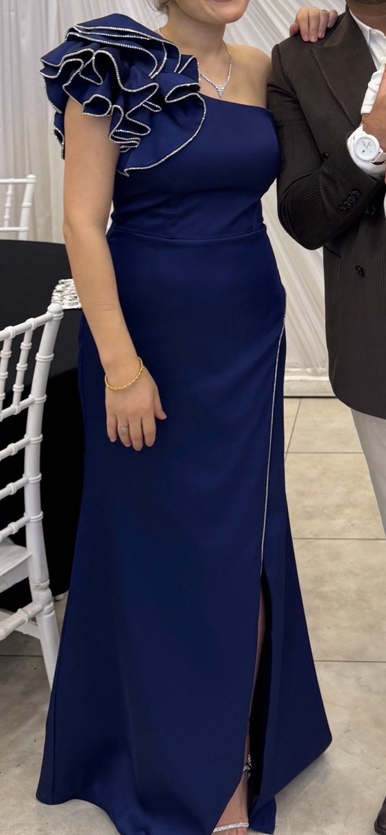 Lacivert, uzun ve vücuda oturan bu abiye elbise, parlak dokusu, yaka detaylı ve ince askılı kollarıyla düğünler için uygundur. Modern klasik tarzda, drapeli tasarıma sahiptir. ✨normal fiyatı 8000 tl İstanbuldayım