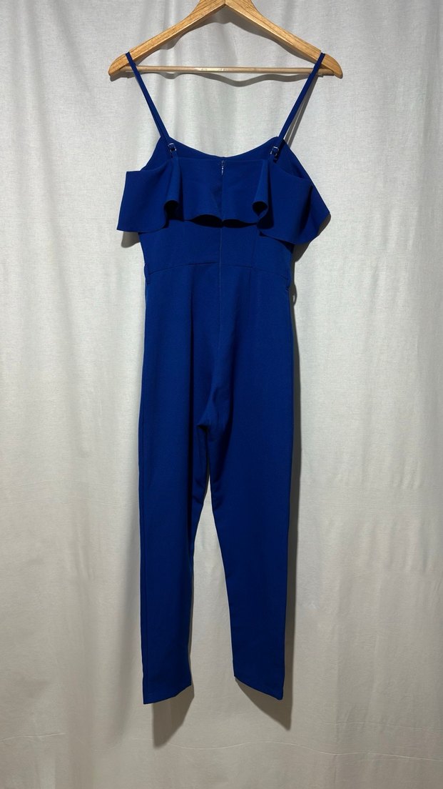 Lacivert, askılı ve fırfırlı detaylı, vücuda oturan uzun çok şık bir tulum. Kemer yerleri var. Ben orasına fular geçirip kullanmıştım. Marka temsilidir. Askıları kırık sadece. Son görselde ürünün tüm ölçülerini yazdım.