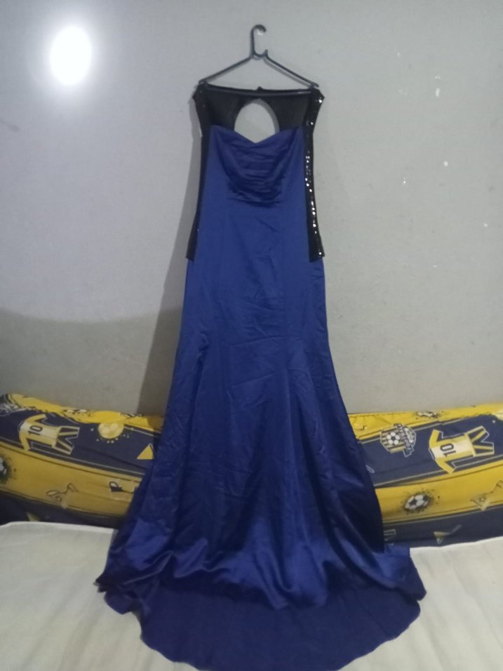 Kadın Lacivert Uzun Askısız Drapeli Abiye