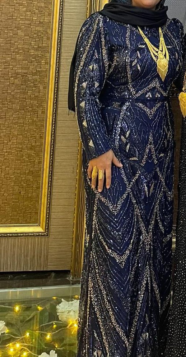 Bu dar kesim uzun abiye elbise, koyu lacivert renk ve detaylı boncuk işlemeleriyle V yaka ve uzun kolludur. Düğünler için uygun, gösterişli ve sade bir modeldir. ✨