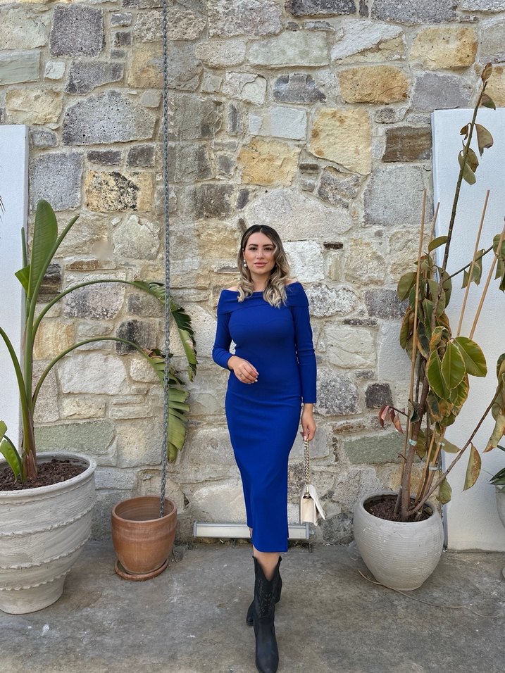 Lacivert uzun denim elbise, yüksek yakalı ve uzun kollu tasarımıyla normcore ve street style arasında, rahat bir kesime sahiptir. Ofis için şık ve rahat bir seçimdir.