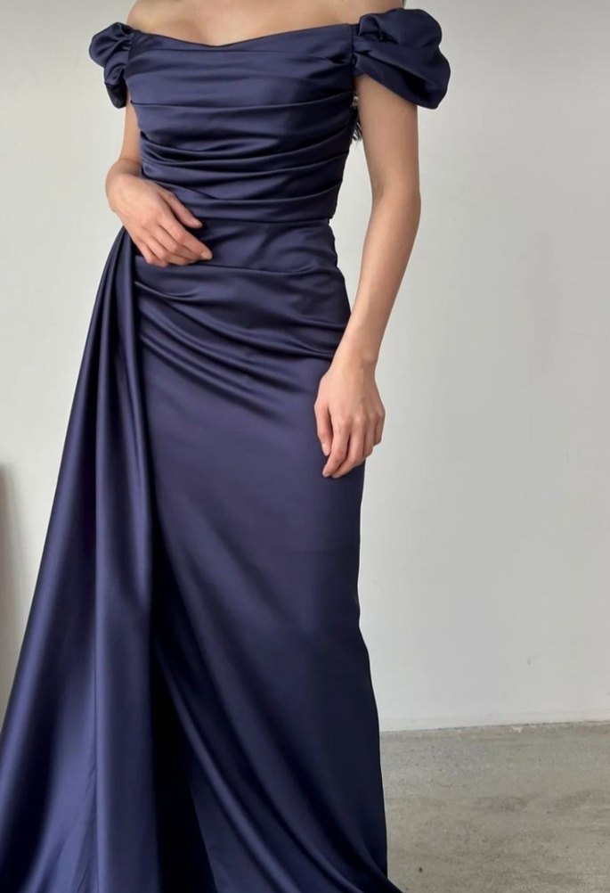 Kadın Lacivert Uzun Drapeli Abiye Elbise