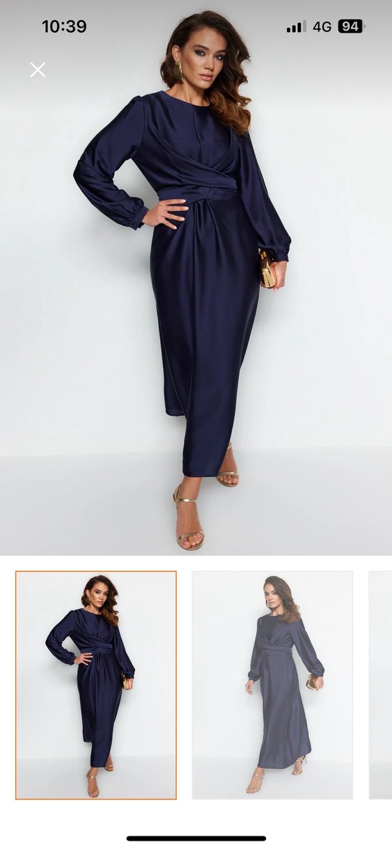 Lacivert uzun elbise, drapeli tasarımı ve regular kesimi ile. İpek dokulu kumaş, kesik yaka ve askılı kollara sahip. Temiz bir defa giyilmiştir, o kadar güzel bir elbise ki anlatamam …