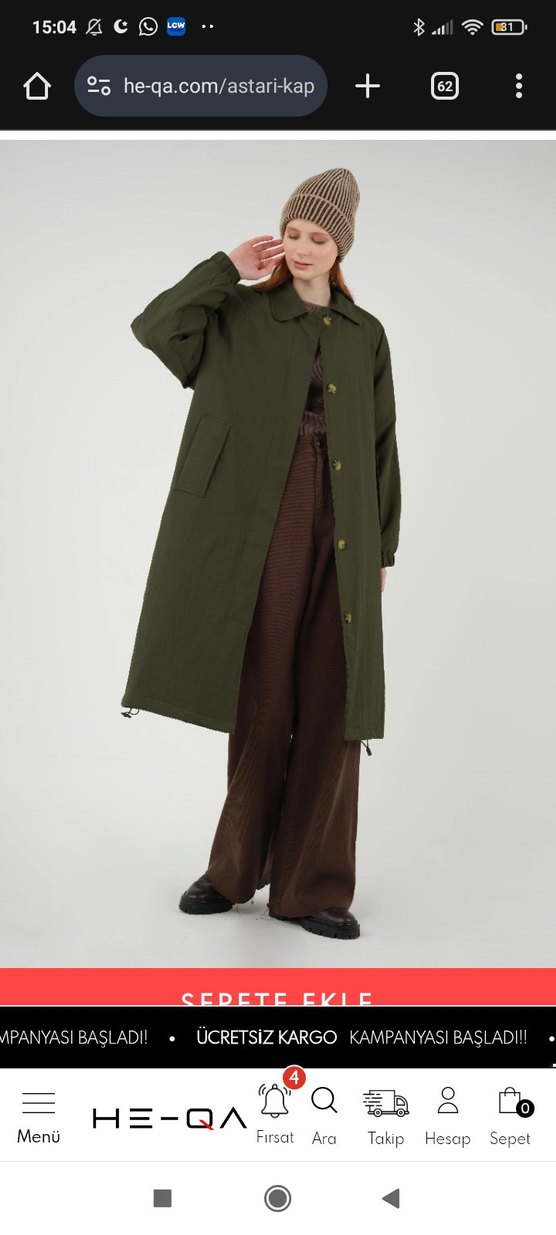 Kadın lacivert uzun trençkot, düğmeli, notched yaka ve bol kesimdir. Uzun kollu, sentetik kumaştan üretilmiştir, günlük kullanıma uygundur. He-QA dan aldım bedeni büyük geldiği için satiyorum fiyatta yardımcı olurum kendi sitesinde 1800 TL LACIVERT RENK