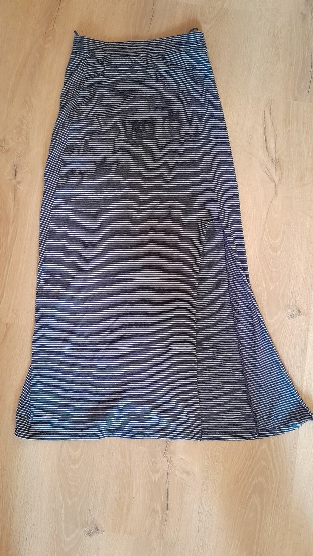 yirtmacli ,vücuda oturan uzun etek, yumuşak sentetik kumaştan yapılmıştır. Lacivert renkte, desensiz, günlük rahat sokak stiline uygundur.