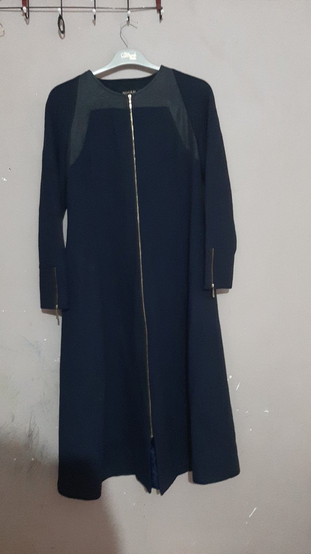 Kadın Lacivert Uzun Fermuarlı Kaban