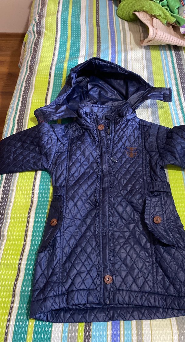 Kadınlar için uzun ve dar kesim, kapitone desenli lacivert ceket. Fermuarlı ön ve sivri yaka detayıyla günlük rahat kullanıma uygun. Uzun kolludur ve sentetik kumaştan yapılmıştır.